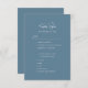 Carte RSVP de Faire-part de mariage Whimsical Moderne Bleu Dusty. Tous les textes sont pré-arrangés pour que vous personnalisiez facilement et rapidement avec vos propres détails.