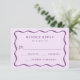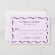 Voici notre carte RSVP de la collection Modern Wavy Frame, où le raffinement et le style se marient. Doté d'un cadre ondulé violet foncé signature contre un arrière - plan violet clair, cette carte RSVP rétro ajoute une touche de style à votre suite mariage. Simplifiez votre planification et augmentez votre expérience mariage grâce à notre carte RSVP Modern Purple Wavy Frame.