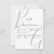 Ce design présente les initiales de la mariée et du marié comme le principal objet du design. Des initiales personnalisées utilisant la typographie de police de script créent une parfaite fusion de moderne et d'élégance. Un simple design de carte de réponse RSVP de mariage minimaliste personnalisé avec monogramme moderne, noir, blanc et gris. Des invitations de mariage et d'autres articles de papeterie sont également disponibles. Pour repositionner les initiales, cliquez sur le lien "Cliquez pour customiser plus loin" lors de la personnalisation des détails.
