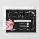 Carte rsvp de mariage rose et or et argent diamant floral face à un arrière - plan noir.