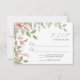 Carte Mariage Feuille Aquarelle Réponse RSVP conçue avec des grappes de feuilles dans des tons doux de vert et de rose sur un arrière - plan blanc. Le texte comprend : Votre réponse par date, ainsi que l'espace permettant aux invités d'insérer leur nom et de cocher leur réponse. L'envers correspond à l'arrière - plan rose doux. Pour personnaliser, insérez simplement votre réponse par date dans notre modèle, en remplaçant l'exemple de texte. Assurez-vous de voir la collection complète de Mariages Feuilles Watercolor, pour les cartes et accessoires correspondants.
