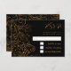 Cet élégant rsvp de mariage présente un délicat design ornemental floral avec des fleurs, des oiseaux et des feuilles sur un arrière - plan or et noir. Le texte combine écriture manuscrite et polices serif pour un look élégant et moderne.