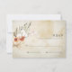 Complétez votre suite mariage avec notre Rustic Floral Boho Wedding RSVP Card, conçue pour s'harmoniser avec vos invitations à thème bohème. Avec un arrière - plan en papier rustique et des accents floraux boho assortis, cette carte RSVP assure un processus de réponse cohésif et élégant.
