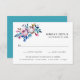Carte de réponse de mariage florale moderne avec des pivoines et des roses roses accompagnées de brins de verdure dans des nuances de sarcelle et de bleu. Le modèle comprend des choix de repas pour vos invités et le verso est d'une nuance correspondante de sarcelle bleu vif et audacieux. Cette carte de réponse de mariage lumineuse aux couleurs de pierres précieuses est idéale pour un mariage d'été.