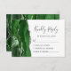 Le bord gauche de cette élégante carte d'enceinte RSVP de mariage moderne comporte une bordure d'aquarelle vert chasseur ornée d'une parties scintillant en faux argent. Le titre "Kindly Reply" apparaît dans un script d'écriture manuscrite, avec le texte personnalisable ci-dessous en caractères gris fusain sur un arrière - plan blanc. L'envers présente un design d'agate vert et argenté assorti.