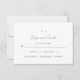 Cette carte de réponse mariage rsvp en noir et blanc minimaliste comporte un simple monogramme et un script rsvp avec une sélection de choix de repas.