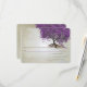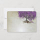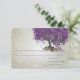 Arbre Magique Fantaisiste de l'Amour, Arbre aux Feuilles de Cœur Violet sur Papier Métallisé Ton Argent Chaud Taché de Thé avec une Superposition de Partition Antique et quelques petits motifs tourbillonnants mignons pour mettre en valeur les racines de l'amour sur cette invitation de mariage unique en forêt...