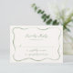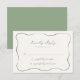 Complétez votre suite mariage avec notre carte Whimsical Sage Green RSVP correspondante. Avec les mêmes flores dessinées à la main et les tons doux vert sauge, cette carte permet à vos invités de répondre facilement dans le style. Simple, élégant et entièrement personnalisable, c’est le moyen idéal de capturer l’essence de votre mariage tout en gardant les choses organisées. Disponible en version imprimée ou téléchargeable, cette carte RSVP permet de confirmer la présence à la fois belle et sans effort.