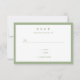 Une carte RSVP de mariage est faite dans la sauge et blanc, avec la typographie de la sauge avec juste assez d'informations pour gagner la journée. Cet élément fait partie d'une collection de mariages qui inclut votre choix d'invitation, une date de sauvegarde, et plus encore. Placez vos informations sur cette carte RSVP, ajoutez-les à votre panier et faites un merveilleux mariage. Micro Mariage Sage Typographie Minimal RSVP Card Conception des jours fériés | ©Melissa Patton - Designer
