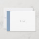 Carte RSVP de mariage moderne avec une bande bleue audacieuse sur le côté gauche. Le modèle est composé d'une police serif classique, d'une police serif moderne et d'un script élégant. Le dos a une bande le long du côté gauche avec votre monogramme. Ce design simple et minimaliste est parfait pour un mariage traditionnel et formel.