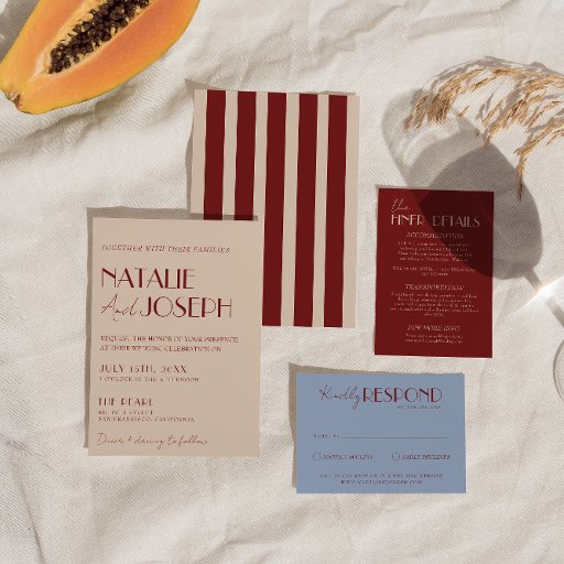 A simple and elegant calligraphy deep red and light blue retro wedding rsvp card. That has a vintage and modern light blue background with burgundy script and hand written whimsical stylish wordings . Minimalist and chic with handwritten lettering . It is all editable by clicking on the personalize button.
