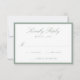 This wedding RSVP card features elegant sage green calligraphy script at the top, paired with classic serif lettering and space for your desired wedding response date. A soft sage green border frames the design, bringing a calm, refined feel to the structured layout. The understated design offers a polished way for guests to reply, making this RSVP card well suited for garden-inspired, modern, and classic wedding celebrations. Personalize the wording to create a response card that feels natural, balanced, and thoughtfully designed.