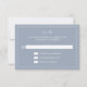 Carte RSVP mariage simple avec un design moderne et élégant avec votre monogramme à deux lettres en haut et vos détails entourés d'une mince bordure. Tout le texte est en blanc sur un arrière - plan bleu poussiéreux. Les polices et les couleurs arrière - plans peuvent être changées en n'importe quelle couleur en cliquant sur le bouton "personnaliser". Un design chic et design qui conviendra à un couple minimaliste.