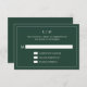 Carte RSVP mariage simple avec un design moderne et élégant avec votre monogramme à deux lettres en haut et vos détails entourés d'une mince bordure. Tout le texte est en blanc sur un arrière - plan vert de forêt. Les polices et les couleurs arrière - plans peuvent être changées en n'importe quelle couleur en cliquant sur le bouton "personnaliser". Un design chic et design qui conviendra à un couple minimaliste.