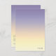 L'arrière - plan de toutes les pièces de cet ensemble minimaliste de mariage est un dégradé saisissant de couleurs de l'indigo à la pêche et jaune pâle. La carte RSVP de mariage présentée ici présente un design élégant et moderne et une police sans serif contemporaine pour ajouter à son attrait. Ajoutez facilement les détails de votre événement en utilisant le modèle fourni. Recherchez ID741 pour voir l'ensemble complet des produits correspondants dans Indigo Sunset ou choisissez l'une des autres combinaisons de dégradé disponibles pour convenir à votre palette de couleurs mariages.