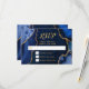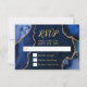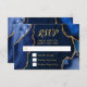 Make a bold and elegant first impression with this navy blue and gold agate marble RSVP card, featuring rich jewel tones, organic stone textures, and shimmering gold accents perfect for fall and winter celebrations. The deep midnight blue hues paired with metallic gold detailing create a dramatic yet refined look ideal for a wedding RSVP, birthday RSVP, or Sweet Sixteen RSVP with a formal, modern, or glamorous aesthetic. Inspired by natural agate and geode patterns, this luxurious design coordinates beautifully with upscale seasonal events and is fully customizable to match your details, adding timeless sophistication to autumn and winter celebrations alike.