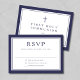 Navy Blue Religious Cross Boy First Communion RSVP Card.