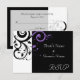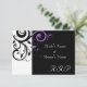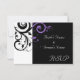 Petite carte de réponse RSVP pour correspondre à notre invitation de mariage noir et blanc avec tourbillon inverse violet, avec un fond de feuille de défilement graphique gras. Personnalisez en ligne avec vos détails de mariage.