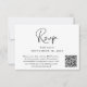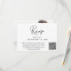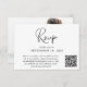 Carte RSVP de mariage moderne qui présente "Rsvp" dans un script chic. Entrez l'adresse de votre site Web mariage pour créer un code QR que vos invités peuvent analyser en ligne vers RSVP. L'arrière présente votre photo superposée avec vos prénoms et date mariage réunis par un coeur.