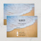 Carte RSVP avec photo d'une plage de sable brun doré au surf mousse blanc et à l'eau bleue.