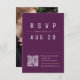 Design de typographie chic moderne en prune violet, or et blanc, simple et élégant, grande carte de mariage RSVP avec code QR pour mariage formel minimaliste, mariage simple moderne. Voir toutes les pièces correspondantes dans la collection.