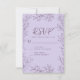 Elégante carte RSVP lavande avec une bordure botanique blanche délicate et des lettres de script modernes. L'arrière - plan pastel doux associé à des contours floral fantaisistes crée un look sophistiqué mais romantique, parfait pour les mariages, les douches nuptiales ou les événements formels. La carte comprend un format simple permettant aux clients d'indiquer leur présence, ce qui la rend à la fois belle et fonctionnelle.