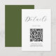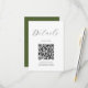 Elegant and minimalist charcoal black and white with moss green QR code wedding details enclosure card in modern calligraphy. This card reverses to a solid moss green color and pairs beautifully with my wedding stationery suites. Designed by Victoria Grigaliunas of Do Tell A Belle. Visit www.zazzle.com/dotellabelle to see more designs.