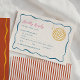 Complete your wedding stationery suite with this playful retro-inspired RSVP card. Featuring a wavy frame, bold striped backing, and charming disco ball illustration, this design brings a fun, music-filled vibe to your celebration. Soft script typography paired with clean, easy-to-read text keeps responses stylish and practical for guests.
