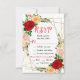 This fun and whimsical wedding rsvp enclosure card features watercolor red, pink and orange roses with foliage on a gold geometric frame. The text combines handwritten script and serif fonts for a stylish and modern look. This is perfect for a spring or summer rustic wedding.