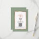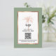 Offrez à vos invités de répondre à votre faire-part de mariage et d'explorer votre site mariage avec ces élégants détails RSVP et code QR design avec script moderne et texte noir, y compris un palmier artistique et cadre en cuivre or rose métallique sur le devant de la carte. Un arrière - plan vert sage est à l'avant et à l'arrière.