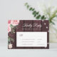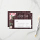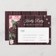 Carte RSVP de mariage rustique avec choix de repas avec un bouquet rose d'aquarelle rose vif avec feuilles et feuillage verdoyants et un script de calligraphie à la main élégant sur un arrière - plan de bois de grange bordeaux foncé avec lumières à cordes.++++++++++++++++ Adjudication et papeterie disponibles dans la collection.