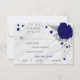 Magnifique carte rsvp botanique personnalisable avec choix de repas belle fleurs bleu royal avec feuilles gris argent contre élégante arrière - plan en marbre Les détails de la parties scintillant sont simulés