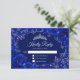 Royal blue and silver floral Quinceanera RSVP reply card. Features, script font, silver butterflies, watercolor roses and tiara. Perfect for an elegant princess style glam celebration. Personalize with your own details.