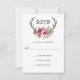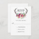 Avec un style boho rustique enchanteur, cette carte RSVP de mariage a des cornes de cerfs magnifiquement ornées de fleurs d'aquarelle dans des teintes violettes et roses riches. Inscrivez la date de réponse RSVP requise à la place de l'exemple de texte affiché.