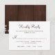 Kindly reply calligraphy script rustic country traditional wedding RSVP card with brown barn wood like background on the backside.