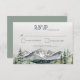Cette belle aventure rustique simple commence le mariage carte RSVP avec aquarelle peinte des montagnes paysage et beau support vert sauge, parfait pour l'automne, l'hiver ou le mariage de destination. Personnalisez-le avec les détails de votre jour de mariage.