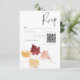 Capturez l'essence de la saison automnale avec notre carte de réponse mariage de automne enchanteresse avec code QR. Décorée d'une délicate couronne d'aquarelle de feuillage et de feuilles aux riches teintes rouille, bordeaux, marron et tan contre un arrière - plan blanc immaculé, cette invitation dégage chaleur et charme. Chaque coup de pinceau célèbre la beauté de la transition de la nature, créant un magnifique centre qui donne le ton à votre célébration mariage de automne. Que vous soyez en train d'échanger des voeux sous un chapiteau de feuilles colorés ou de célébrer à l'intérieur à la lueur des bougies, notre invitation promet d'évoquer l'esprit de la saison dans tous les détails. Embrassez la magie de l'automne et invitations vos êtres chers à partager dans votre journée spéciale avec une invitation qui capture le coeur et l'âme de l'automne. Choisissez notre invitation mariage de automne carré et embarquez dans un voyage à une journée remplie d'amour, de rire et de souvenirs inoubliables au milieu de la beauté de la palette changeante de la nature. Créé par Simply Farmhouse Press.