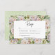 Cette conception simple mais élégante de carte de réponse de mariage dispose d'un bel arrière - plan hydrangea floral de rose poussiéreux, de bleus doux et de violets avec verdure. Le texte est affiché sur un arrière - plan blanc voûté sur un vert sage doux ; et le design est complété avec la première initiale de la mariée et du marié. Ce design fait partie de la série de cartes Rustic Pastel Hydrangea Floral Monogram mariage. Créé par Simply Farmhouse Press.