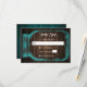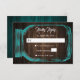 Cartes RSVP de mariage turquoises en bois rustique et en pot de mason personnalisées avec un pot de mason contre un arrière - plan en bois rustique. Personnalisez facilement en ligne. Objets correspondants disponibles pour compléter ces cartes RSVP romantiques et rustiques turquoise mariage.