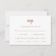 Ces cartes de réponse mariages élégantes et minimalistes présentent une typographie de script en terre cuite et du texte sans serif sur un arrière - plan blanc, pour un design simple et boho que vous aimerez. Il y a de la place pour ajouter à vos invités des options pour le choix de repas de l'entrée ou du dîner.