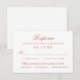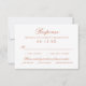 Complétez votre suite avec cette carte de réponse de mariage qui présente un script chaud en cuivre et une typographie serif raffinée sur un fond blanc propre. Comprend un espace pour le nom de l'invité, la sélection de présence et une section pratique de choix de repas. Minimal, intemporel et parfait pour les mariages formels, traditionnels et modernes classiques.