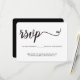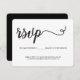 Créez une carte RSVP personnalisée Réservé simple et élégante avec une police manuscrite de script tendance en noir et blanc. Ce design est classique et chic, parfait pour tout événement. La carte RSVP est conçue pour simplifier le processus RSVP en éliminant la nécessité pour les clients de renvoyer la carte par la poste. Au lieu de cela, les clients peuvent répondre par courriel ou par téléphone, comme spécifié par le client. Cela permet d'économiser sur les coûts et offre un moyen plus pratique pour les clients de RSVP. Personnalisez la carte RSVP au besoin pour votre événement spécifique. Customisez les coordonnées, indiquez le nombre d'invités et ajoutez des informations ou des instructions supplémentaires. L'objectif est de rendre le processus RSVP simple et sans tracas pour l'organisateur et les invités. Contactez-moi si vous avez besoin d'aide pour cette conception à l'adresse info@lddesignloft.com