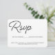 Simple, élégant et utilise une police manuscrite de script tendance, noir et blanc. Classique et chic. Fournissez le nombre d'invités pour chaque invitation que vous envoyez avec ces cartes de réponse, dirigez les invités vers votre site web de mariage pour répondre afin d'éviter d'avoir à renvoyer les cartes de réponse. Rendez les choses pratiques et faciles pour vos invités.