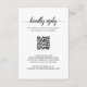 Simple carte RSVP de mariage noir et blanc avec les mots, "gentiment répondre" dans un script élégant avec des swashes. Ci-dessous, votre code QR et les instructions. Le dos a votre photo préférée. Cette carte RSVP moderne et minimaliste est coordonnée avec n'importe quel style de suite de faire-part de mariage.