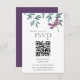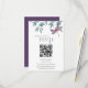 Cette carte RSVP de mariage vert de jardin moderne simple avec code QR comporte une libellule d'aquarelle dans les tons violet et rose. Il repose sur un agencement simple de verdure naturelle de jardin d'aquarelle sur un arrière - plan blanc. Le dos est un violet profond solide qui correspond à la libellule. Ajoutez simplement l'URL de votre site Web mariage, afin que vos invités puissent scanner le code QR et répondre facilement.