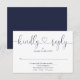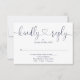 Une simple et élégante carte de réponse RSVP au cœur de script bleu marine et blanc avec vos détails dans une typographie chic. Conçue par Thisisnotme©