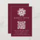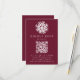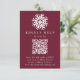 Présentation de la carte RSVP de mariage Snowflake Wine QR Code, un choix parfait pour les mariages d'hiver, de vacances ou de Noël ! Cette carte élégante présente un flocon de neige blanc et gras sur un arrière - plan de couleur vin, ajoutant un charme festif à votre papeterie mariage. Customisez-le avec la date de réponse souhaitée et incluez un code QR lié à votre site mariage, ce qui facilite la consultation en ligne des clients de RSVP. Rationalisez votre planification mariage avec cette carte RSVP magnifiquement conçue, tout en ajoutant une touche de magie hivernale à votre journée spéciale !