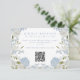 Elegant wedding response card with a QR code and a soft blue watercolor floral design.