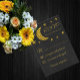 Sous les étoiles, anniversaire, quinceanera et doux 16 événements. Ciel de nuit noir arrière - plan avec lune d'or et étoiles