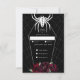 Spider Web Coffin Black White Hallomarriite Invitation est un design élaboré pour les couples qui aiment le plus Halloween et veulent combiner leur mariage gothique avec les vacances les plus effrayantes. Toiles d'araignées, cercueils, roses rouges bordeaux - vous l'avez.